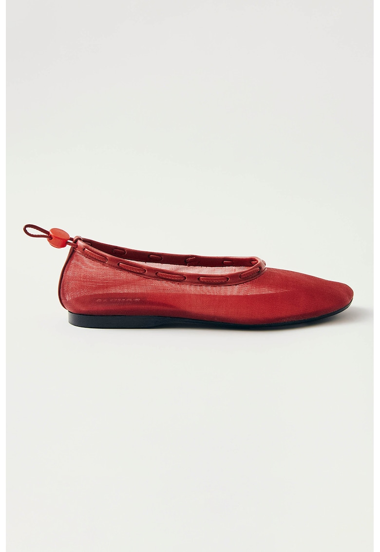 Подметката е съставена от други материали, които гарантират стабилност и сцепление, осигурявайки сигурност при ходене както на закрито, така и на открито. Червеният цвят добавя жив и свеж акцент на вашата визия, придавайки динамика и отчетлив стил, който лесно може да се комбинира с различни тоалети.