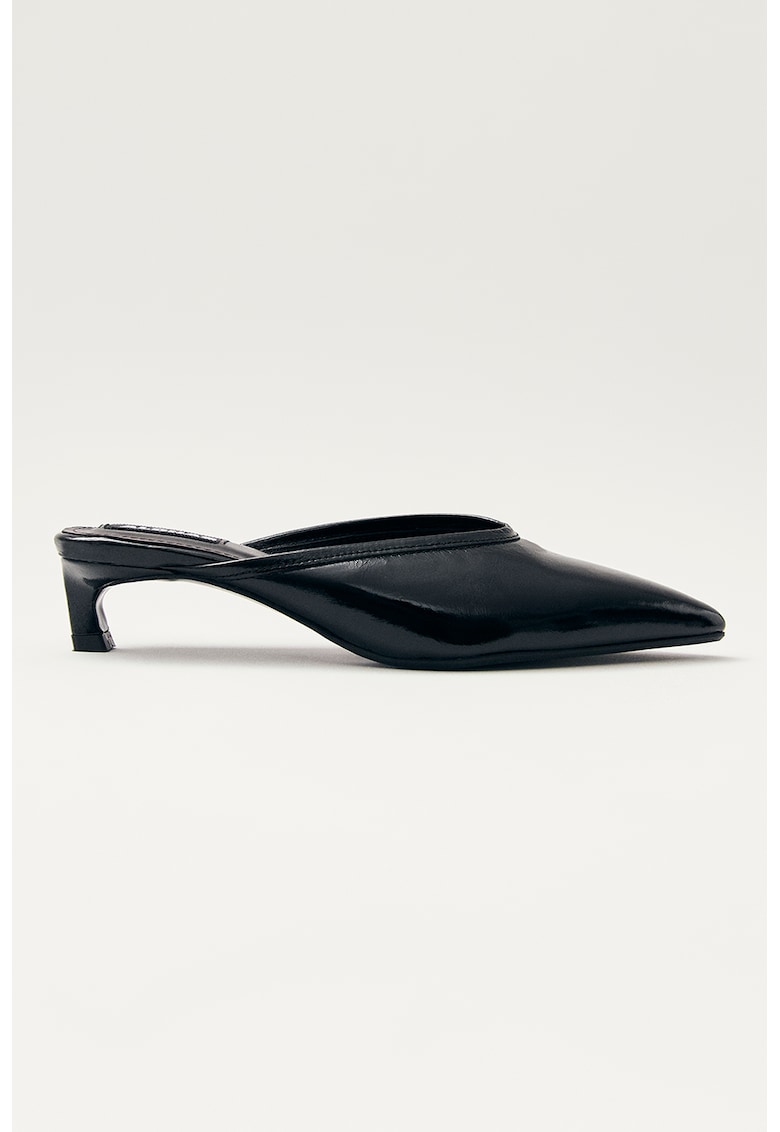Кожените сабота с остър връх в черен цвят са перфектният избор за всеки, който търси стилна и удобна обувка за ежедневна употреба. Изработени от естествена кожа, тези обувки предлагат високо качество и дълготрайност. Горната част от кожа гарантира комфорт и дишане на крака, докато коженият интериор допринася за допълнително удобство при носене. Острият връх добавя модерна и изтънчена нотка към дизайна, правейки ги подходящи както за офиса, така и за свободното време. nnТокът тип котешки с височина 4.5 см осигурява стабилност и елегантен изглед, който подчертава женствеността, без да компрометира удобството. Подметката е изработена от други висококачествени материали, осигуряващи износоустойчивост и добро сцепление с повърхността. nnЧерният цвят е универсален и лесно се комбинира с различни облекла и стилове, което прави кожените сабота с остър връх чудесен избор за всеки гардероб. Тяхната изчистена визия без принт подчертава класиката и елегантността на обувката, позволявайки ѝ да бъде център на вниманието или да допълни изисканите ви тоалети. nnС тези сабота инвестирате в обувка, която спокойно можете да носите през целия ден, благодарение на качествените материали и добре обмисления дизайн. Изберете кожа и удобство с нашите кожени сабота с остър връх в черен цвят, които ще ви придружават стилно във всяка ваша крачка.