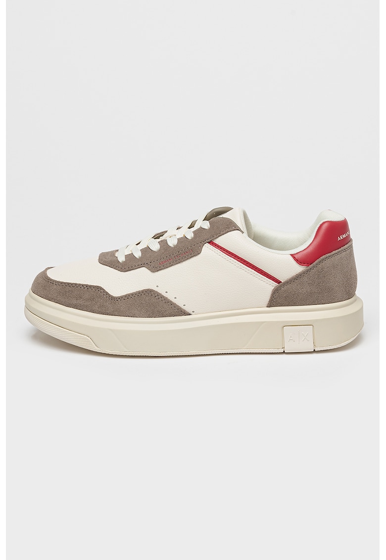 Дизайнът на обувките е акцентиран с принт на едноцветно лого, което придава завършен и стилен вид. Комбинацията от цветове сиво-кафяв, тъмночервен и мръснобял прави този модел универсален и лесен за съчетаване с различни типове облекла – от спортно-ежедневни до по-ежедневно-официални.