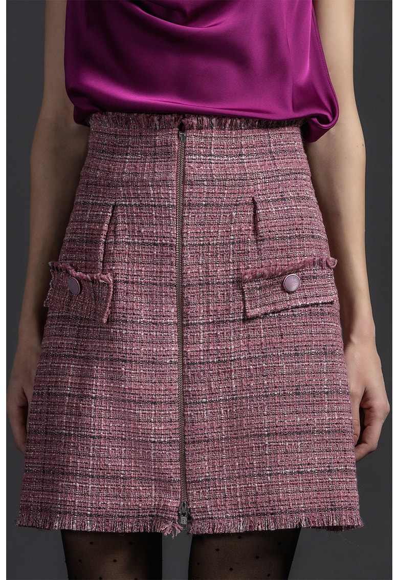 Очарователна пола от туид с цип, перфектна за стилни и елегантни появи. Изработена от висококачествен материал с изящни детайли. Уникалната комбинация от комфорт и моден акцент я прави идеален избор за всяка дама, която цени качеството и стила. Полата се отличава със своя изискан дизайн, удобство при носене и безупречно съчетание с различни облекла. Представлява перфектното допълнение към вашия гардероб и гарантира безупречен външен вид.