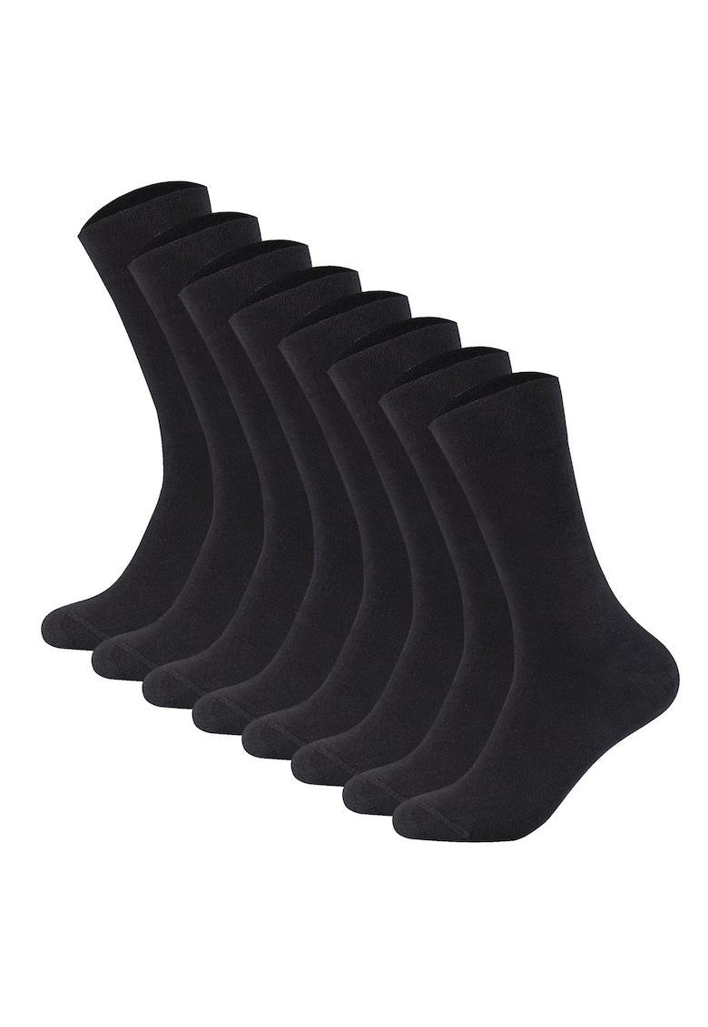 Комплектът от 8 чифта предлага изгодна покупка, позволяваща дълготрайно ползване или споделяне с близки. Благодарение на памучния материал с добавен еластан, чорапите прилягат удобно и не причиняват стягане, като същевременно запазват формата си при многократно носене. Този продукт е практичен избор за всеки, който търси качество и комфорт в ежедневието си, подходящ както за работа, така и за свободното време.