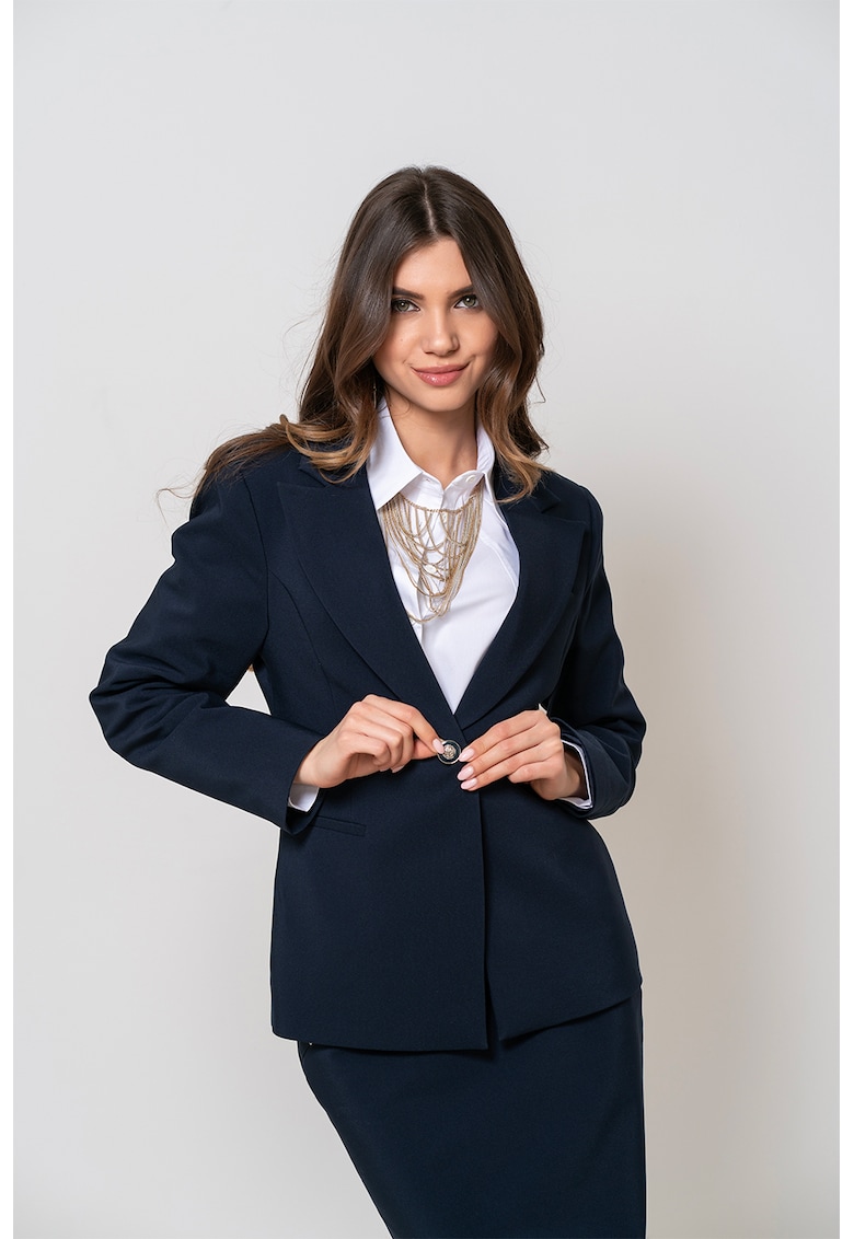 Сако Emily с раздвоен ревер в ултрамарин синьо е перфектният избор за всеки, който търси стил и комфорт в ежедневието си. Изработено от висококачествена смес от памук, полиестер и еластан, това сако предлага приятна мекота и лекота, съчетани с издръжливост. Вталената кройка подчертава силуета, а класическата яка добавя нотка елегантност. Моделът е с дълги ръкави и се закопчава с копчета, което го прави подходящ както за по-официални, така и за по-ежедневни визии. Ултрамарин синьото придава свеж и модерен вид, който лесно се комбинира с различни дрехи и аксесоари. Това сако Emily е безпроблемен избор за стилни жени, които ценят качеството и удобството. Благодарение на внимателно подбрания материал, продуктът остава приятен на допир и не ограничава движението, а в същото време издържа на продължителна употреба. Независимо дали отивате на работа, среща с приятели или специално събитие, сакото с раздвоен ревер ще внесе уникален акцент в тоалета ви. Ако търсите ефектна и практична придобивка за гардероба, сако Emily в ултрамарин синьо е отличен избор, който съчетава съвременна визия и комфорт в едно.
