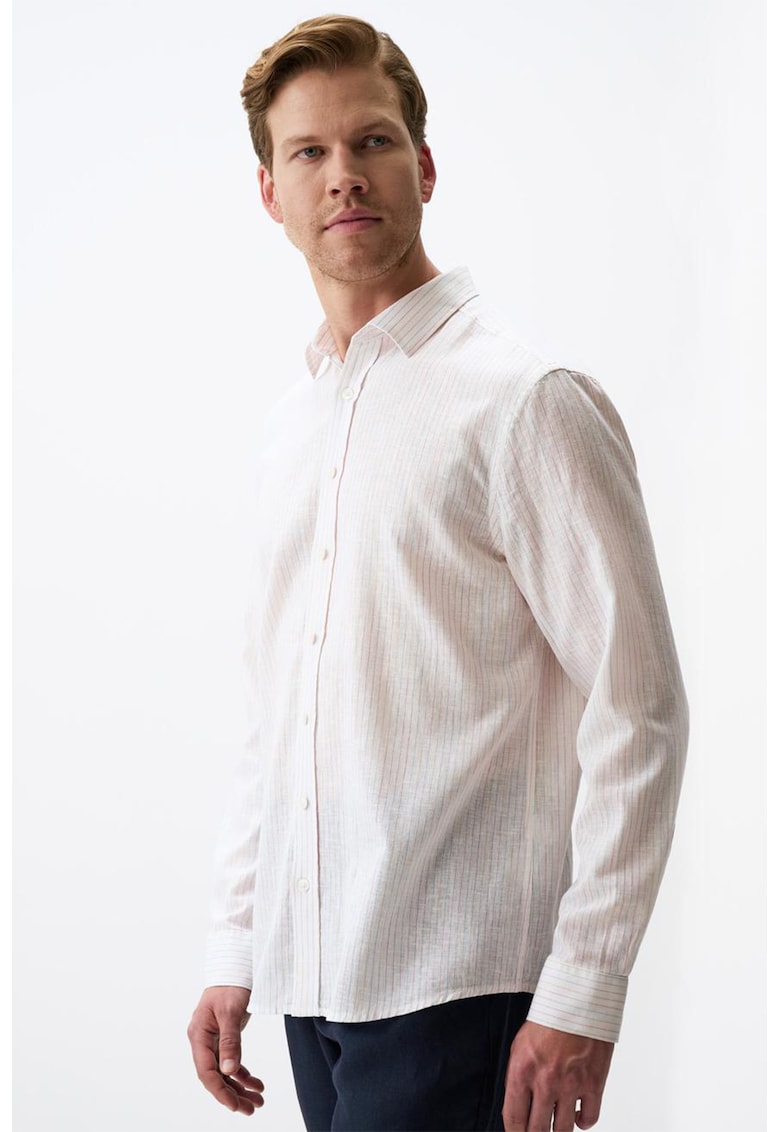 Раирана риза с лен в многоцветен дизайн е идеалният избор за всеки, който търси комфорт и стил в ежедневието си. Изработена от висококачествена комбинация от памук и лен (50% памук и 50% лен), тази риза предлага естествена мекота и проветривост, която я прави подходяща както за офис облекло, така и за по-ежедневни и елегантни поводи. Стандартната кройка и дългите ръкави осигуряват удобство и свобода на движение, докато класическото райе придава модерна и изтънчена визия. Комплектована с копчета за лесно и функционално закопчаване, тази риза е съчетание от практичност и елегантен стил. Многоцветният принт в раирания дизайн ще добави свежест и динамика на вашата визия, като същевременно запази класическата елегантност. Ако търсите дреха, която да бъде както модерна, така и удобна, тази раирана риза с лен е отличен избор, предоставящ естествено усещане и стилна визия за всяка ситуация.