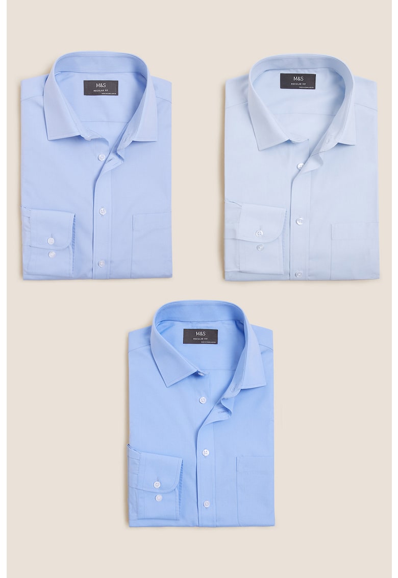 Комплектът от три ризи със стандартна кройка в светлосин цвят е подходящ за мъже, които търсят ненатрапчиви, но елегантни модни решения. Те могат лесно да се съчетаят с панталони, джинси или дори по-официални облекла, предоставяйки многопластова употреба през различните сезони. Изберете тези ризи за баланс между комфорт, стил и качество на разумна цена.