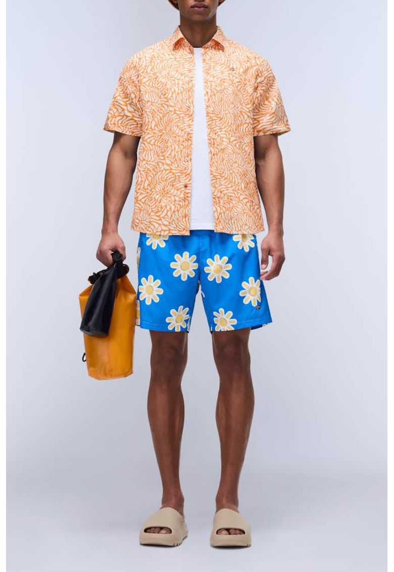 Карираната риза с къси ръкави в бяло и синьо е отлично предложение за всяка мъжка гардеробна колекция, съчетавайки стил и комфорт в едно. Изработена изцяло от 100% памук, тази риза осигурява мекота и дишащи свойства, които я правят идеална за горещите летни дни и ежедневни активности. Стандартната кройка и класическата яка придават елегантен и ненатрапчив вид, докато късите ръкави добавят лекота и свобода на движение. Закопчаването с копчета позволява лесно регулиране и удобна употреба.