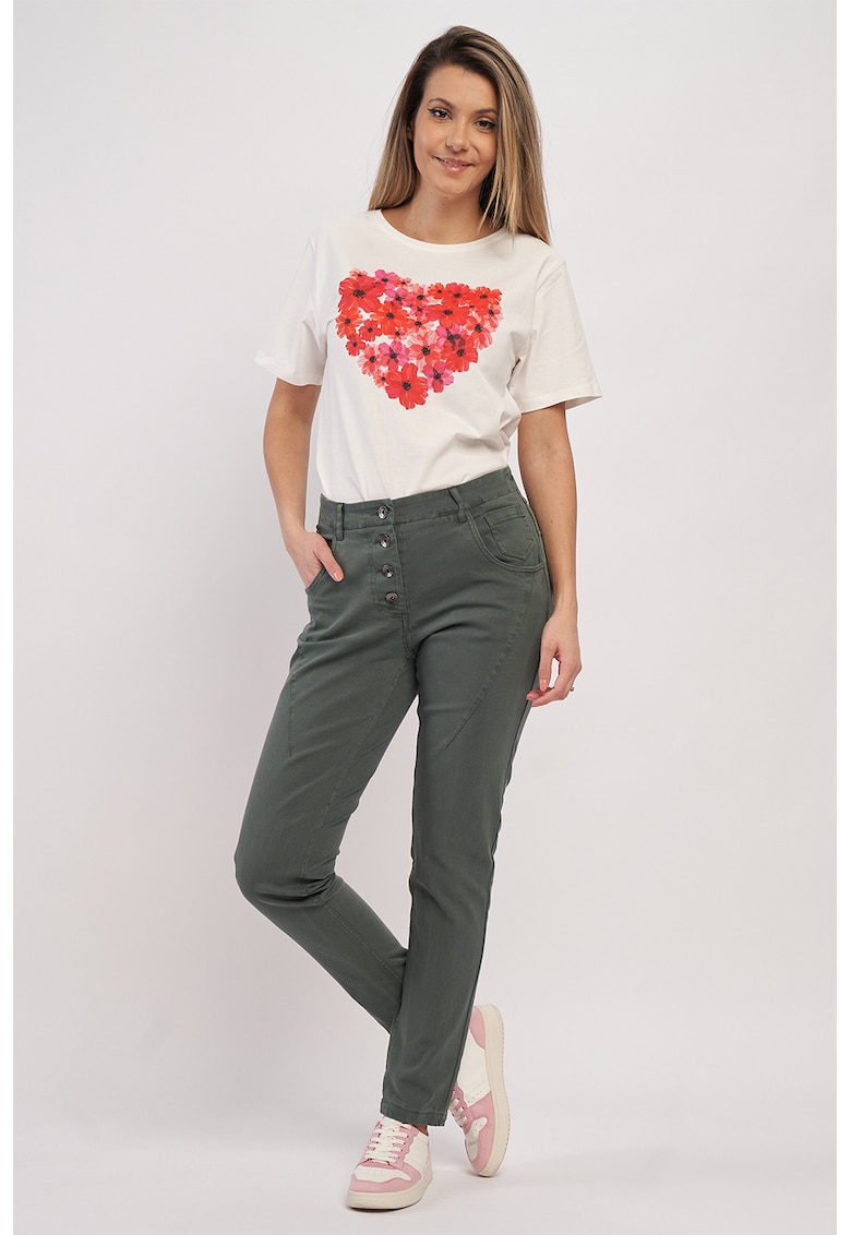 Панталон с висока талия в цвят каки, идеален за ежедневен стил и удобство през целия ден. Изработен от висококачествени материали – 97% памук и 3% еластан, този панталон предлага комфорт и свобода на движенията благодарение на еластичността си. Конусовидната кройка подчертава фигурата, като придава стилен и изчистен силует. Панталонът е с дълга дължина и висока талия, което го прави подходящ избор за разнообразни визии – от ежедневни до по-официални. Закопчаването с копчета допринася за класическия му и елегантен вид. Без принт, с едноцветен дизайн в наситен каки нюанс, той лесно се комбинира с различни горнища и аксесоари. Този панталон може да бъде основен елемент във вашия гардероб, който ви позволява да съчетаете стил и комфорт без компромиси. Перфектен избор за модерни жени, които търсят функционалност и модерен дизайн в един продукт.