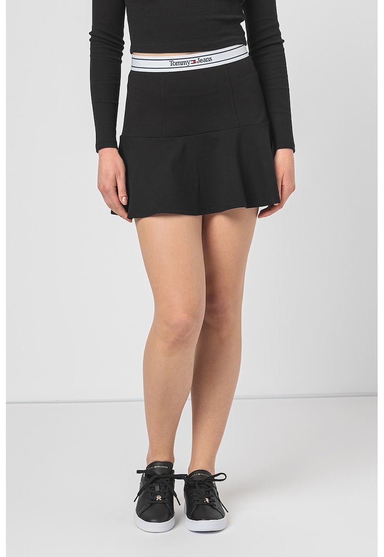 Без излишни принтове и в елегантен черен цвят, тази пола отлично се съчетава с различни горнища и аксесоари, което я прави универсална за различни ежедневни визии. Материалният състав включва комбинация от вискоза, еластан и полиамид, които заедно придават усещането за лекота и същевременно устойчивост. Високата талия подчертава женствеността и позволява безпроблемно комбиниране с ризи, тениски или блузи.